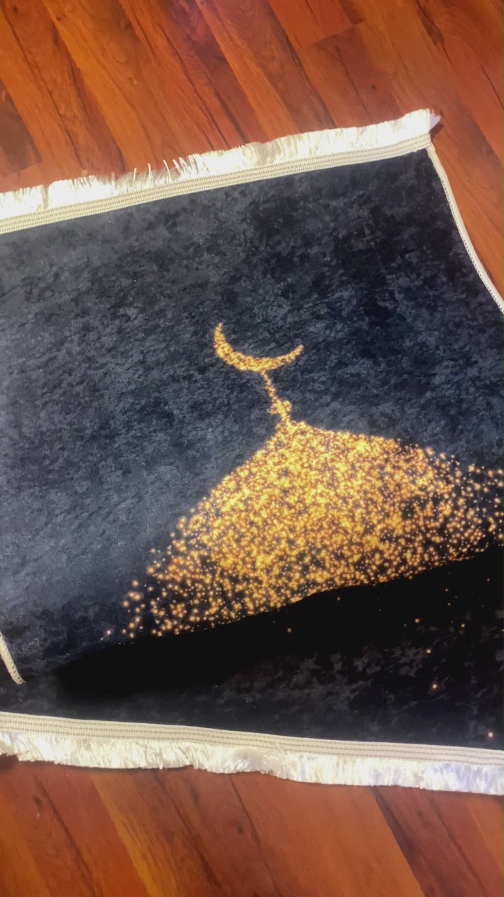 İbadetinize konfor ve zarafet katmak için 3 CM Süngerli Minimal Desenli Gold Siyah Seccade tam size göre!